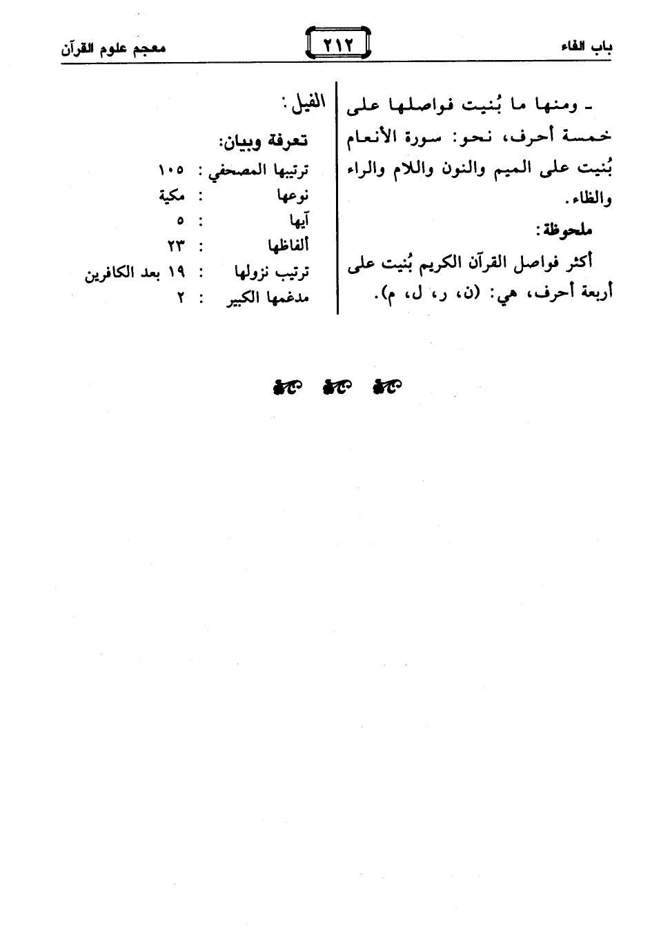 : ترتيبها المصحفي: 105 نوعها: مكية آيها: 5 ألفاظها: 23 ترتيب نزولها: 19 بعد الكافرين مدغمها الكبير: 2