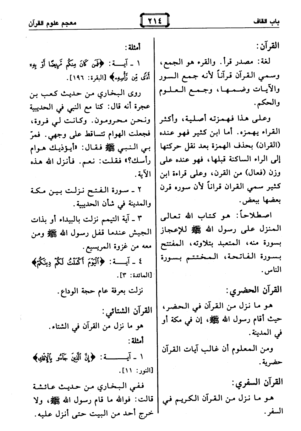 : لغة: مصدر قرأ. والقرء هو الجمع، وسمي القرآن قرآنا لأنه جمع السور والآيات وضمها، وجمع العلوم والحكم.