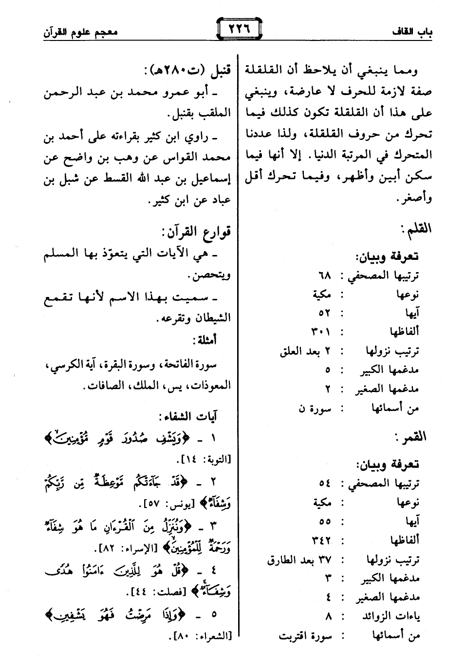: ترتيبها المصحفي: 68 نوعها: مكية آيها: 52 ألفاظها: 301 ترتيب نزولها: 2 بعد العلق مدغمها الكبير: 5 مدغمها الصغير: 2 من أسمائها: سورة ن