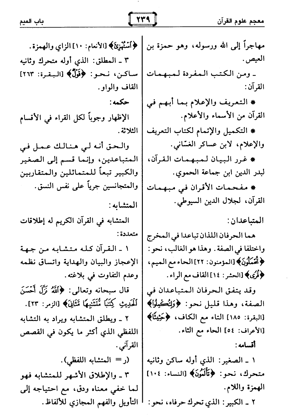 1 - القرآن كله متشابه من جهة الإعجاز والبيان والهداية واتساق نظمه وعدم التفاوت في بلاغته.