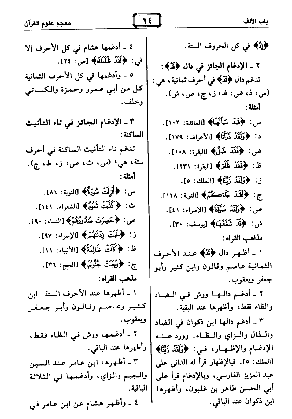 1 - أظهر دال قَدْ* عند الأحرف الثمانية عاصم وقالون وابن كثير وأبو جعفر ويعقوب.