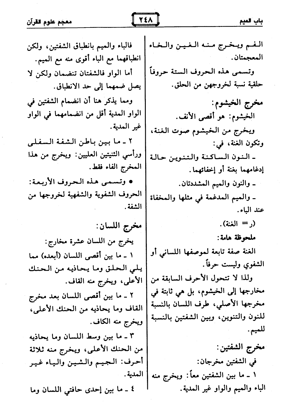 1 - ما بين الشفتين معا: ويخرج منه الباء والميم والواو غير المدية.
