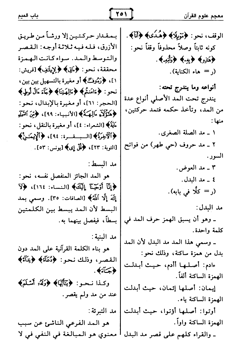 : هو بناء الكلمة القرآنية على المد دون القصر، وذلك نحو: دُعاءً* نِداءً* جاءَ*.
