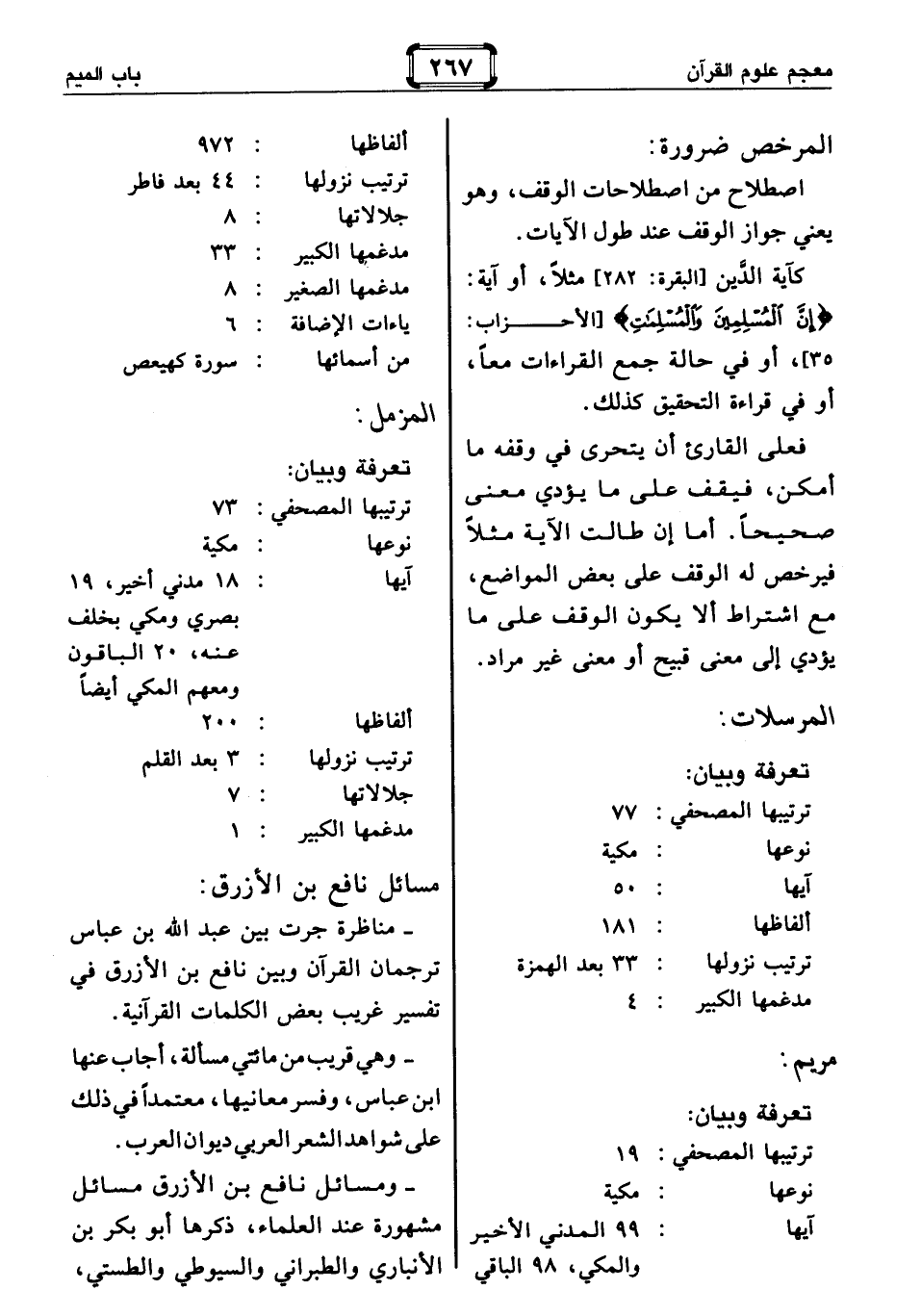 :- مناظرة جرت بين عبد الله بن عباس ترجمان القرآن وبين نافع بن الأزرق في تفسير غريب بعض الكلمات القرآنية.