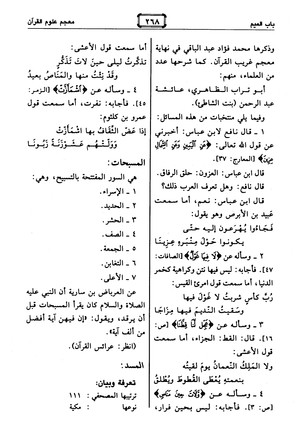 1 - قال نافع لابن عباس: أخبرني عن قول الله تعالى: عَنِ الْيَمِينِ وَعَنِ الشِّمالِ عِزِينَ [المعارج: 37].
