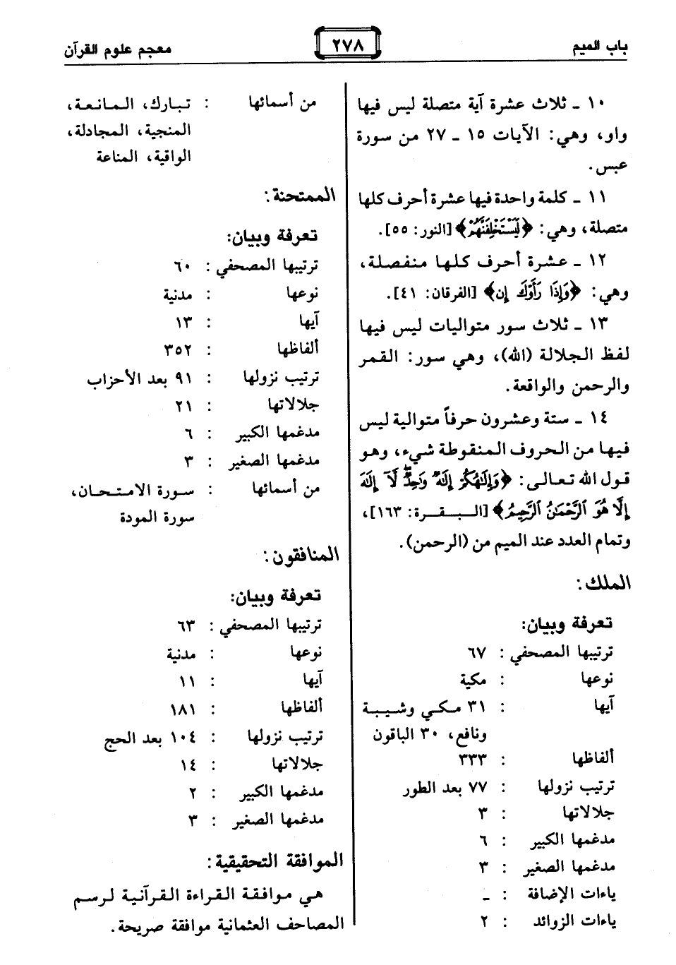 14 - ستة وعشرون حرفا متوالية ليس فيها من الحروف المنقوطة شيء، وهو قول الله تعالى: وَإِلهُكُمْ إِلهٌ واحِدٌ لا إِلهَ إِلَّا هُوَ الرَّحْمنُ الرَّحِيمُ [البقرة: 163]، وتمام العدد عند الميم من (الرحمن).
