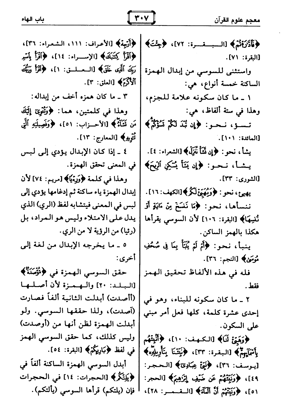 51]، وَنَبِّئْهُمْ أَنَّ الْماءَ [القمر: 28]، أَرْجِهْ* [الأعراف: 111، الشعراء: 36]، اقْرَأْ كِتابَكَ [الإسراء: 14]، اقْرَأْ بِاسْمِ رَبِّكَ الَّذِي خَلَقَ [العلق: 1]، اقْرَأْ وَرَبُّكَ الْأَكْرَمُ [العلق: 3].