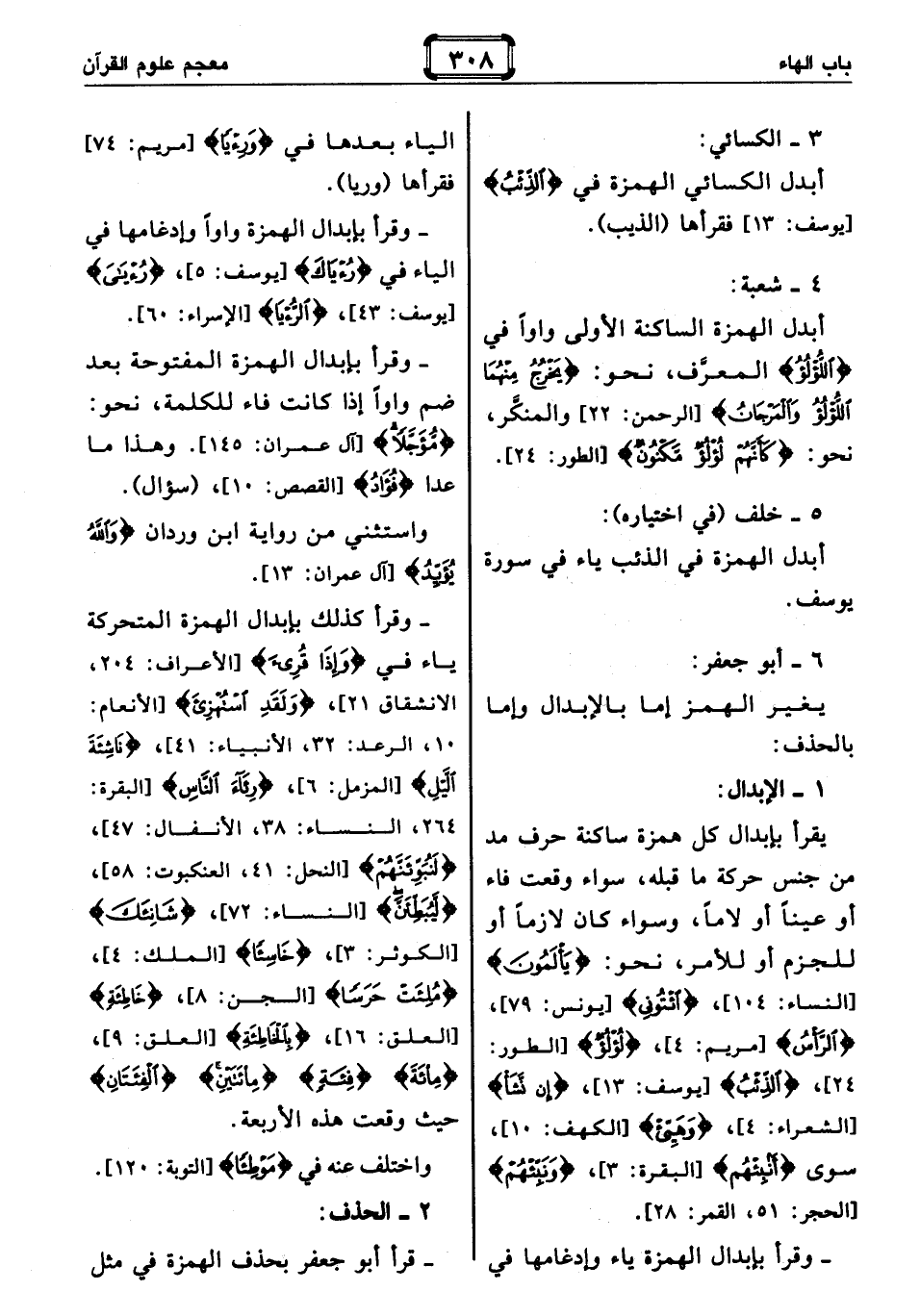 24]، الذِّئْبُ [يوسف: 13]، إِنْ نَشَأْ [الشعراء: 4]، وَهَيِّئْ [الكهف: 10]، سوى أَنْبِئْهُمْ [البقرة: 3]، وَنَبِّئْهُمْ* [الحجر: 51، القمر: 28].