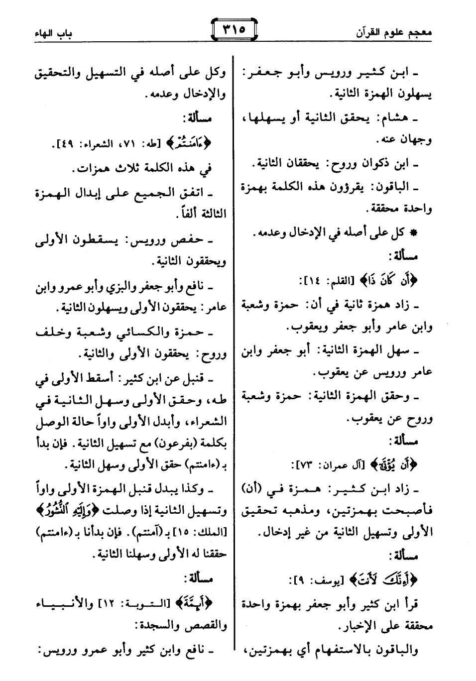 - زاد ابن كثير: همزة في (أن) فأصبحت بهمزتين، ومذهبه تحقيق الأولى وتسهيل الثانية من غير إدخال.