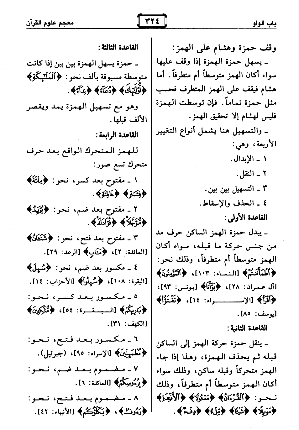 اطْمَأْنَنْتُمْ [النساء: 103]، الْمُؤْمِنُونَ [آل عمران: 28]، بَوَّأْنا [يونس: 93]، اقْرَأْ [الإسراء: 14]، تَفْتَؤُا [يوسف: 85].