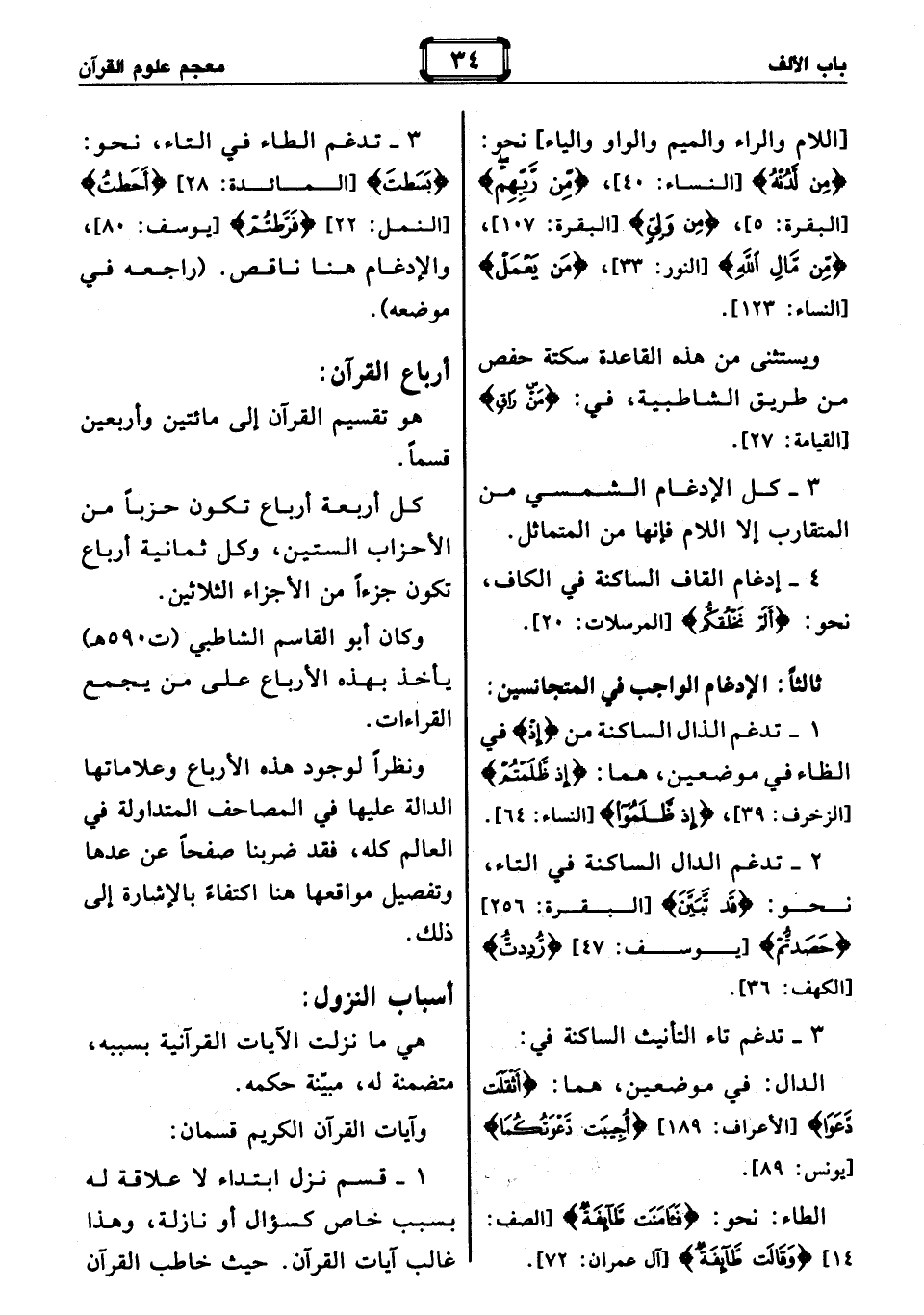 كل أربعة أرباع تكون حزبا من الأحزاب الستين، وكل ثمانية أرباع تكون جزءا من الأجزاء الثلاثين.