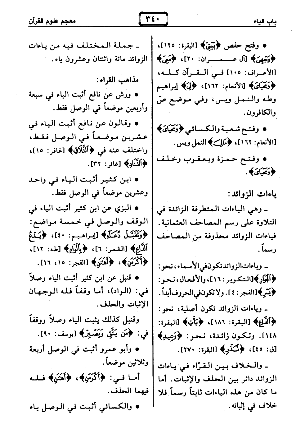 - والخلاف بين القرّاء في ياءات الزوائد دائر بين الحذف والإثبات. أما ما كان من هذه الياءات ثابتا رسما فلا خلاف في إثباته.