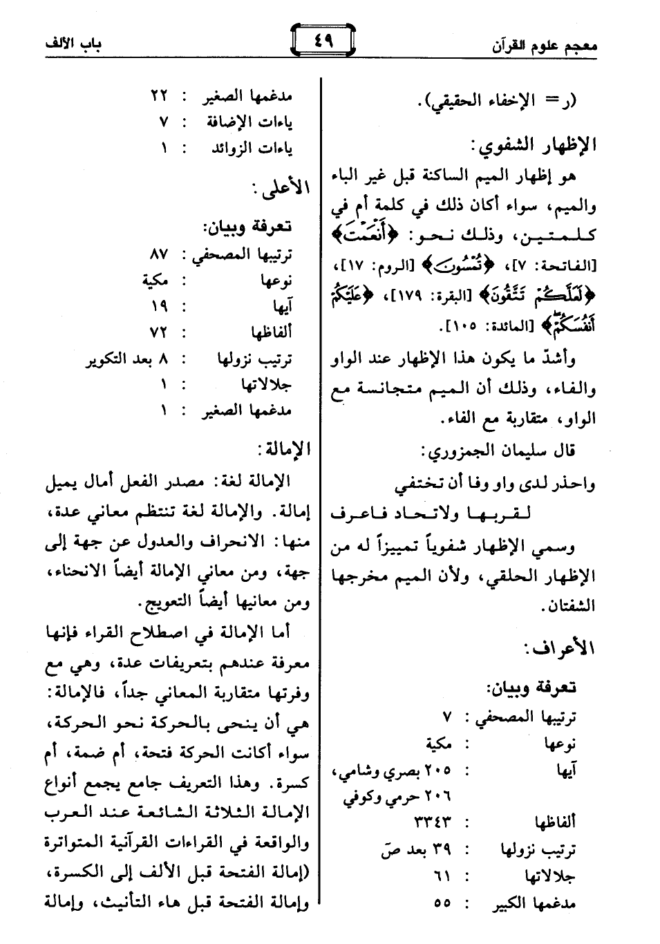 : ترتيبها المصحفي: 87 نوعها: مكية آيها: 19 ألفاظها: 72 ترتيب نزولها: 8 بعد التكوير جلالاتها: 1 مدغمها الصغير: 1