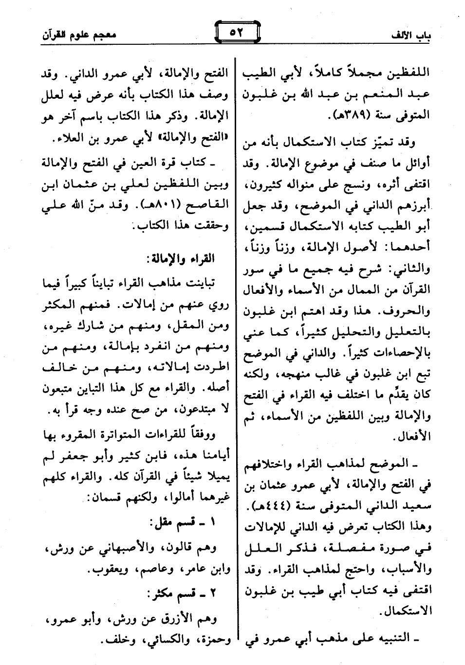 - الموضح لمذاهب القراء واختلافهم في الفتح والإمالة، لأبي عمرو عثمان بن سعيد الداني المتوفى سنة (444 هـ).