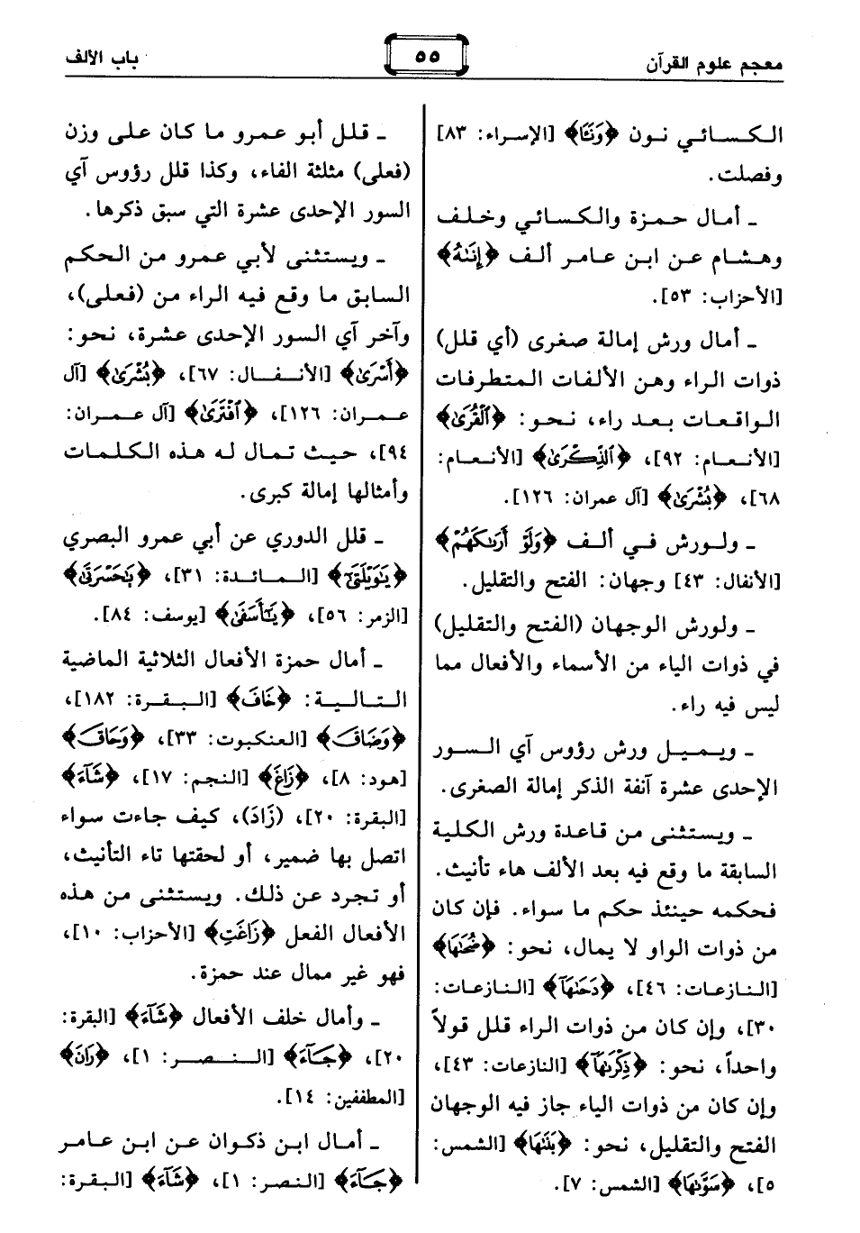 - ولورش في ألف وَلَوْ أَراكَهُمْ [الأنفال: 43] وجهان: الفتح والتقليل.