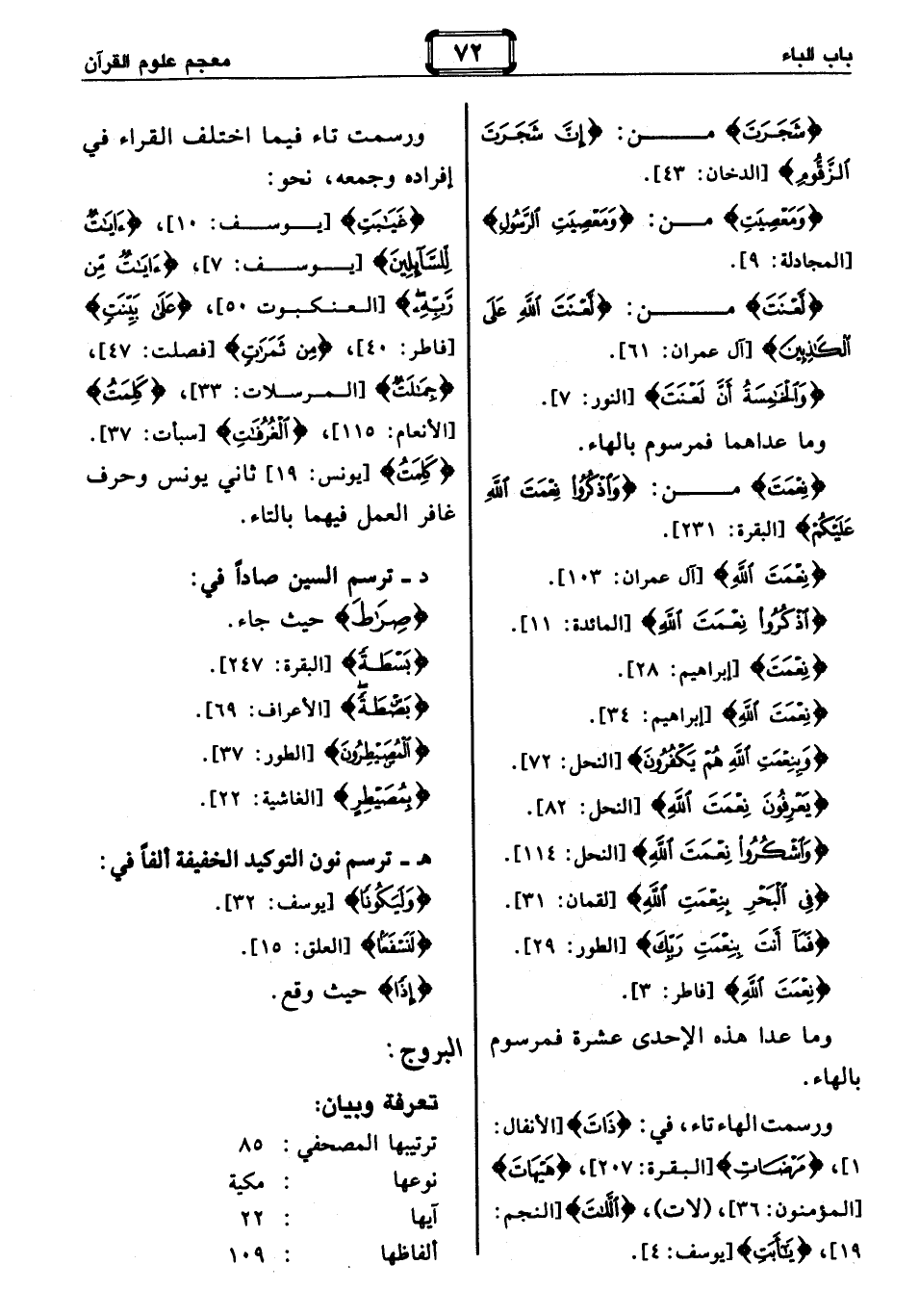 : ترتيبها المصحفي: 85 نوعها: مكية آيها: 22 ألفاظها: 109