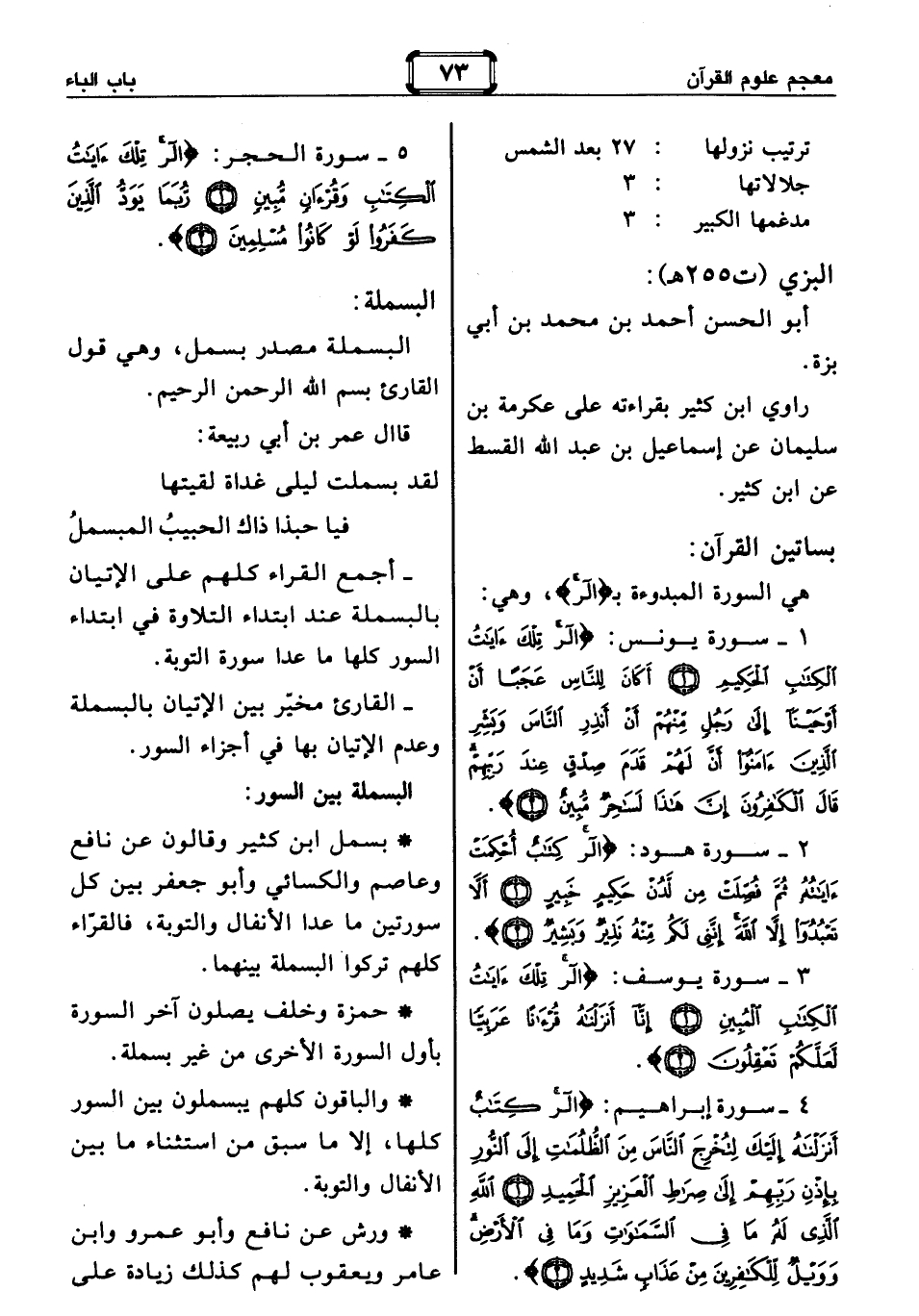 - القارئ مخيّر بين الإتيان بالبسملة وعدم الإتيان بها في أجزاء السور.
