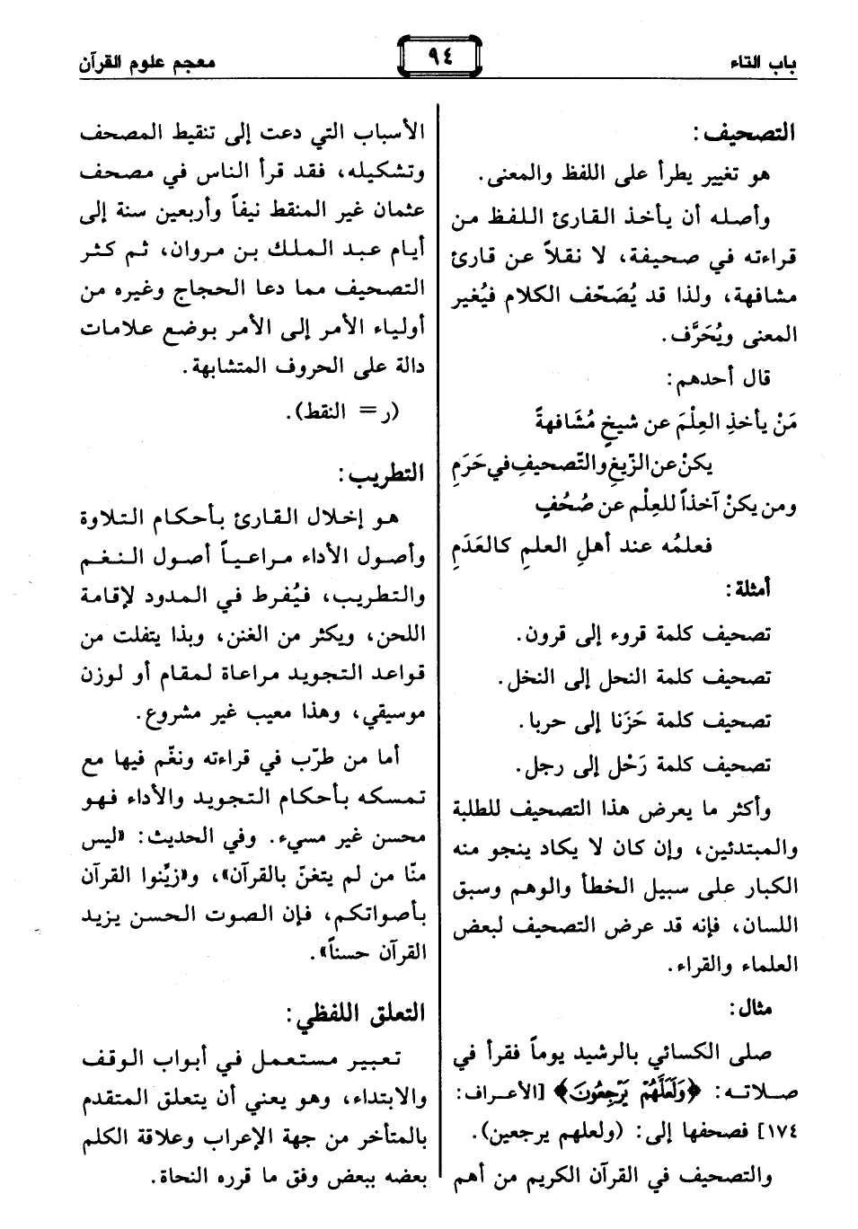 وأصله أن يأخذ القارئ اللفظ من قراءته في صحيفة، لا نقلا عن قارئ مشافهة، ولذا قد يصحّف الكلام فيغير المعنى ويحرّف.