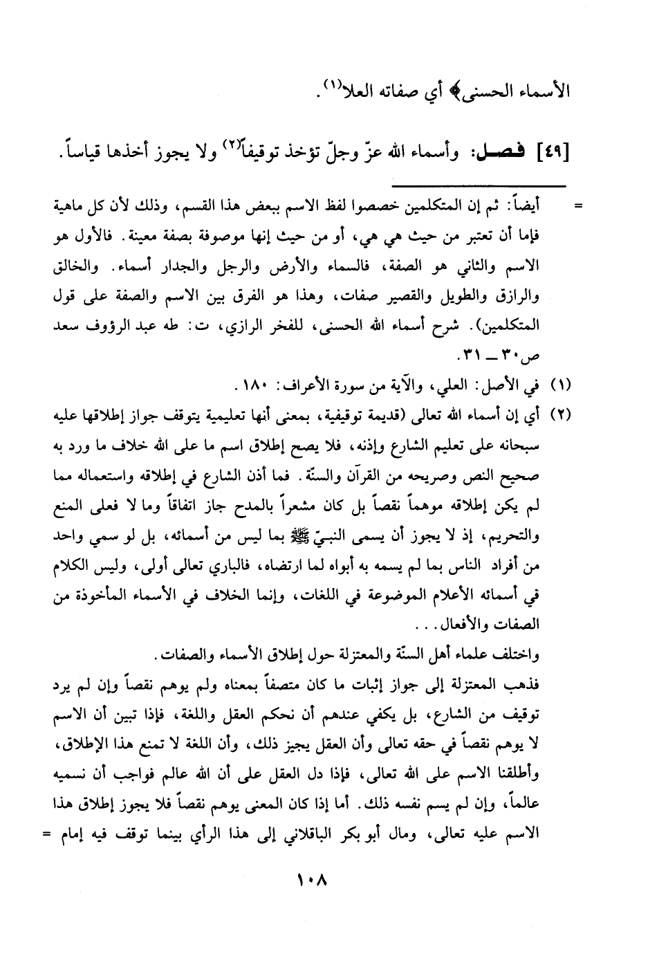 وَأَسْمَاء الله عز وَجل تُؤْخَذ توقيفا وَلَا يجوز أَخذهَا قِيَاسا