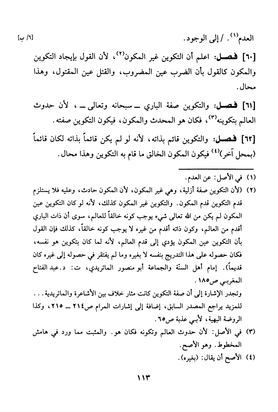 والتكوين قَائِم بِذَاتِهِ لِأَنَّهُ لَو لم يكن قَائِما بِذَاتِهِ لَكَانَ قَائِما بِمحل آخر فَيكون المكون الْخَالِق مَا قَامَ بِهِ التكوين وَهَذَا محَال