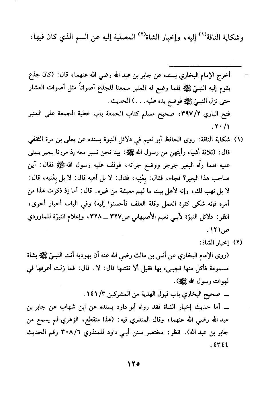 وشكاية النَّاقة إِلَيْهِ وإخبار الشَّاة المصلية إِلَيْهِ عَن السم الَّذِي كَانَ فِيهَا
