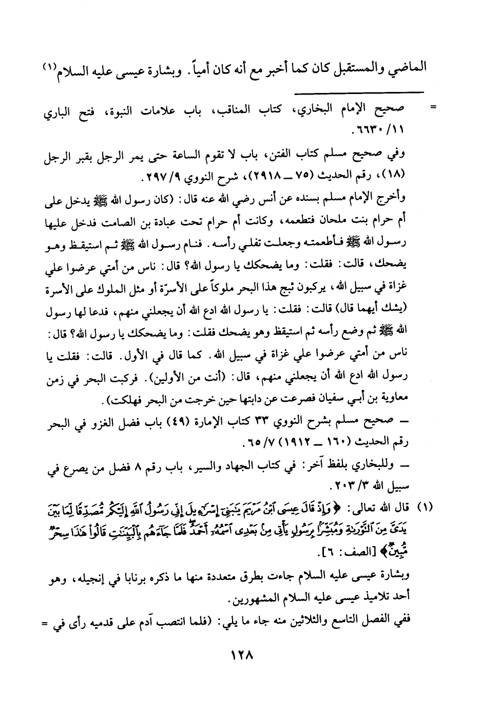 الْمَاضِي والمستقبل كَانَ كَمَا أخبر مَعَ انه كَانَ أُمِّيا وَبشَارَة عِيسَى عَلَيْهِ السَّلَام