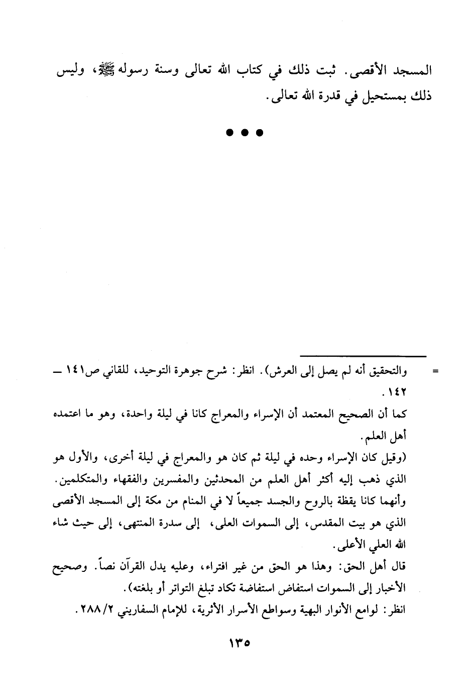 الْمَسْجِد الْأَقْصَى ثَبت ذَلِك فِي كتاب الله تَعَالَى وَسنة رَسُوله الله صلى الله عَلَيْهِ وَسلم وَلَيْسَ ذَلِك بمستحيل فِي قدرَة الله تَعَالَى