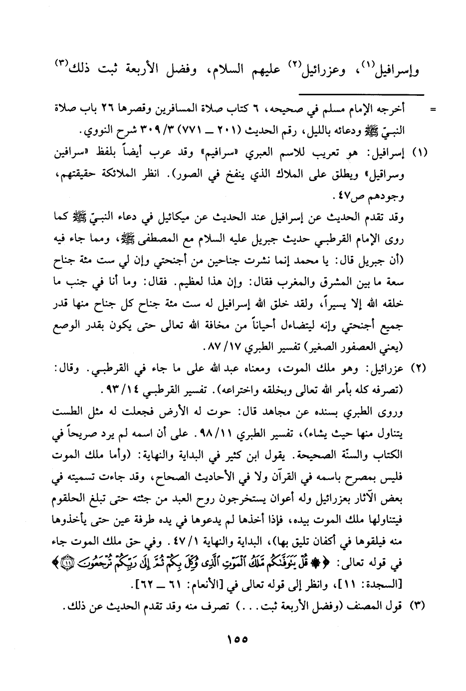 وإسرافيل وعزرائيل عَلَيْهِم السَّلَام وَفضل الْأَرْبَعَة ثَبت ذَلِك