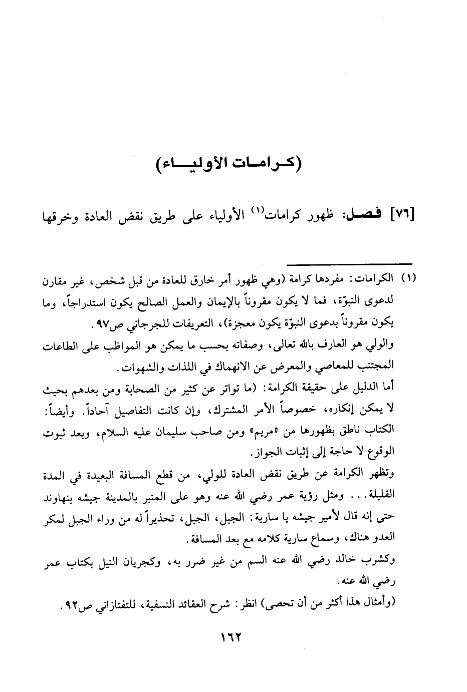 ظُهُور كرامات الْأَوْلِيَاء على طَرِيق نقض الْعَادة وخرقها