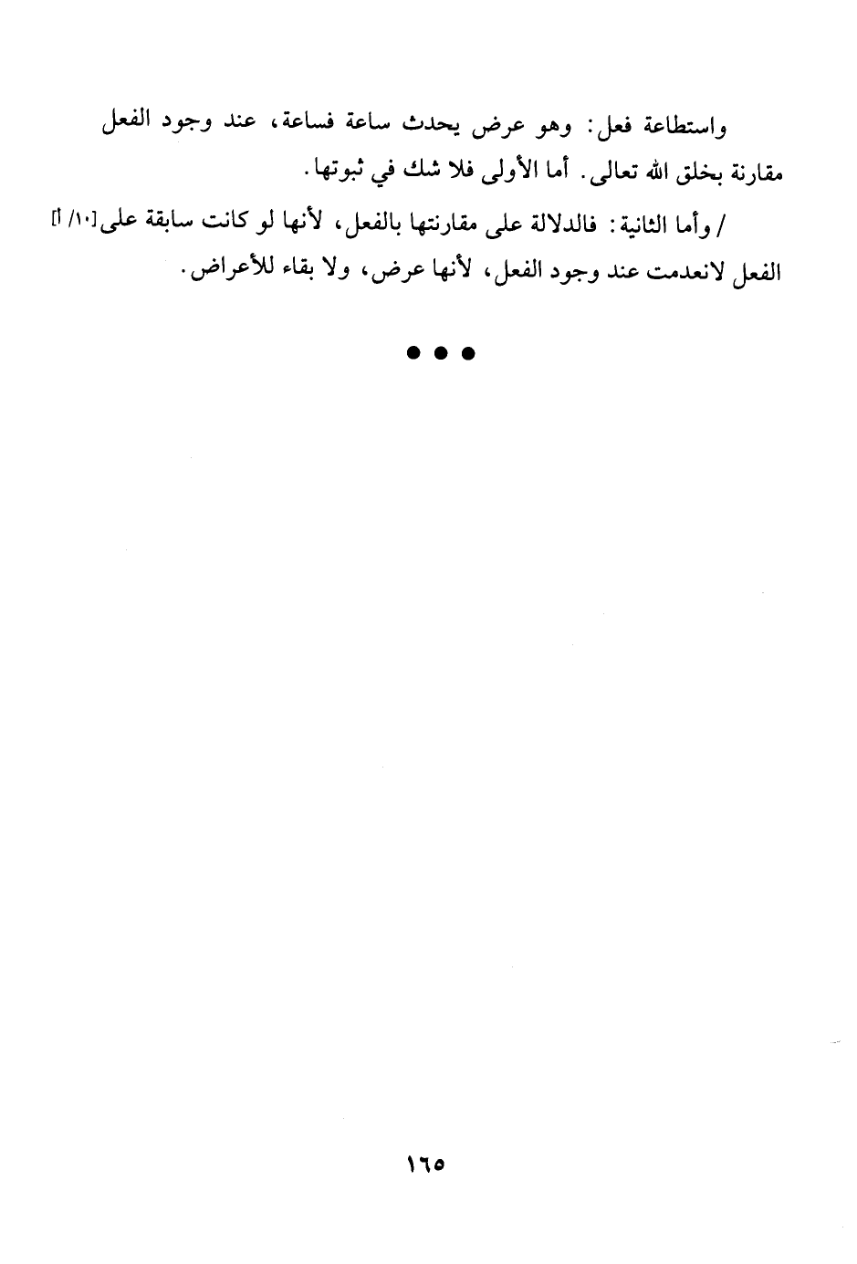 واستطاعة فعل وَهُوَ عرض يحدث سَاعَة فساعة عِنْد وجود الْفِعْل مُقَارنَة بِخلق الله تَعَالَى وَأما الأولى فَلَا شكّ فِي ثُبُوتهَا