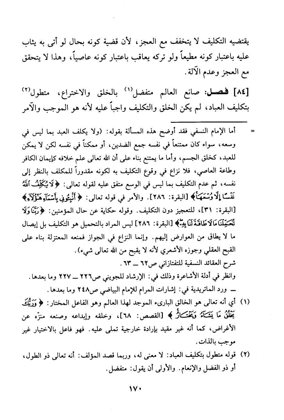 صانع الْعَالم متفضل بالخلق والاختراع متطول بتكليف الْعباد لم يكن الْخلق والتكليف وَاجِبا عَلَيْهِ لِأَنَّهُ هُوَ الْمُوجب والآمر
