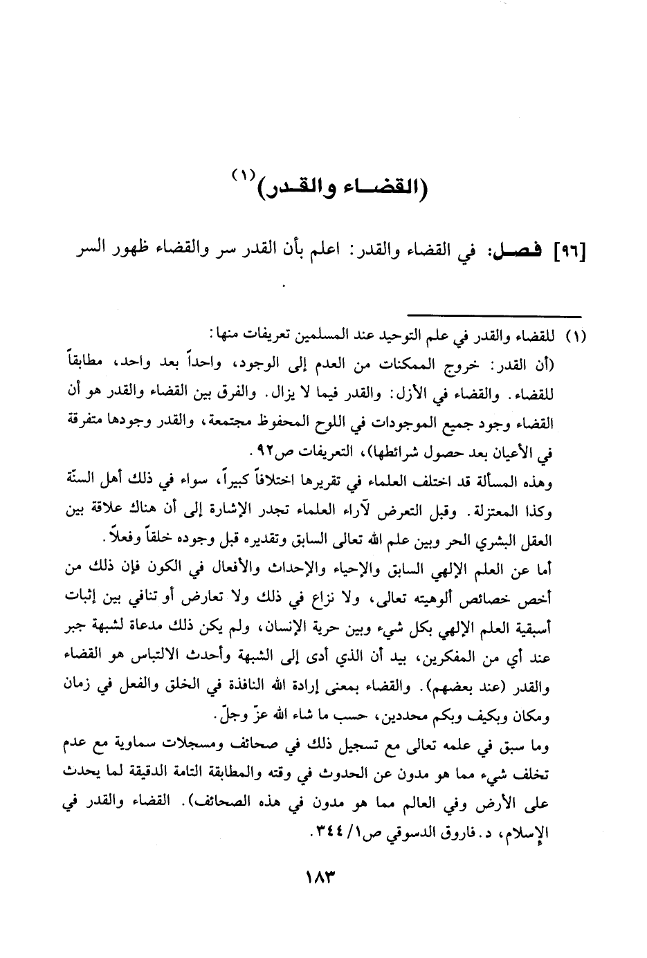 فِي الْقَضَاء وَالْقدر اعْلَم بِأَن الْقدر سر وَالْقَضَاء ظُهُور السِّرّ