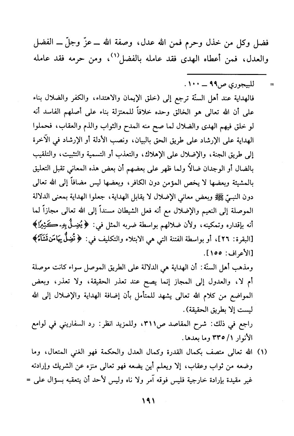 فضل وكل من خذل وَحرم فَمن الله عدل وَصفَة الله عز وَجل الْفضل وَالْعدْل فَمن أعطَاهُ الْهدى فقد عَامله بِالْفَضْلِ وَمن حرمه فقد عَامله