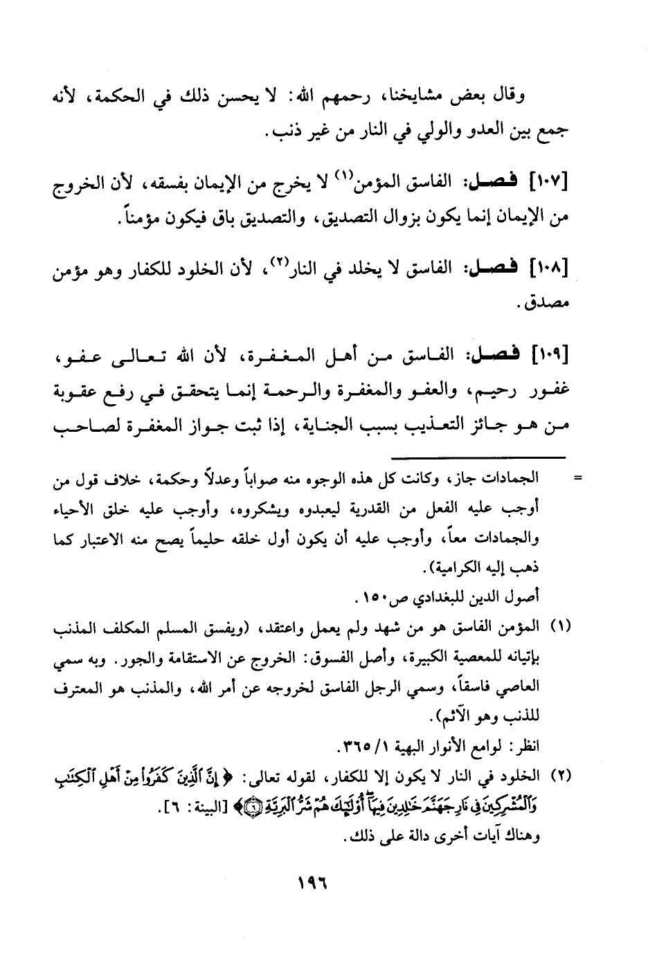الْفَاسِق الْمُؤمن لَا يخرج من الْإِيمَان بِفِسْقِهِ لِأَن الْخُرُوج من الْإِيمَان إِنَّمَا يكون بِزَوَال التَّصْدِيق والتصديق بَاقٍ فَيكون مُؤمنا