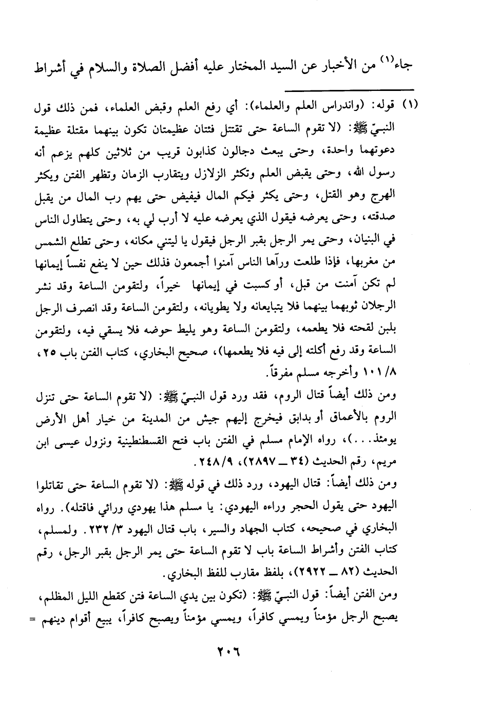 جَاءَ من الْأَخْبَار عَن السَّيِّد الْمُخْتَار عَلَيْهِ أفضل الصَّلَاة وَالسَّلَام فِي أَشْرَاط