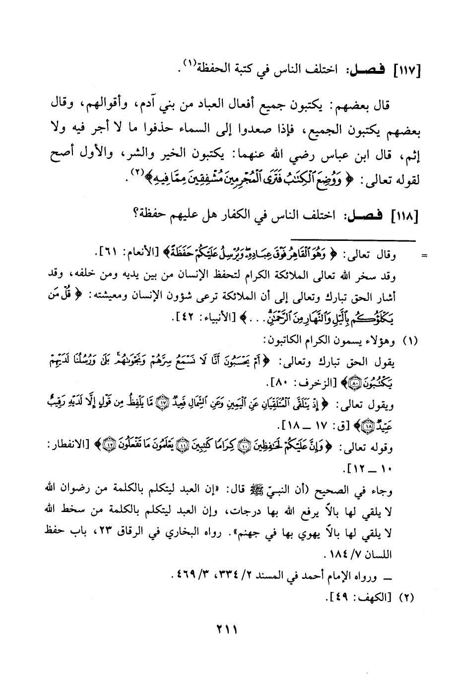 اخْتلف النَّاس فِي الْكفَّار هَل عَلَيْهِم حفظَة