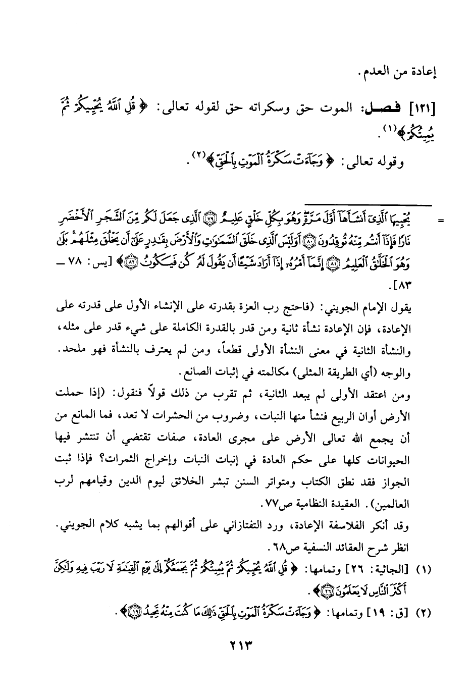 الْمَوْت حق وَسَكَرَاته حق لقَوْله تَعَالَى {قل الله يُحْيِيكُمْ ثمَّ يميتكم}