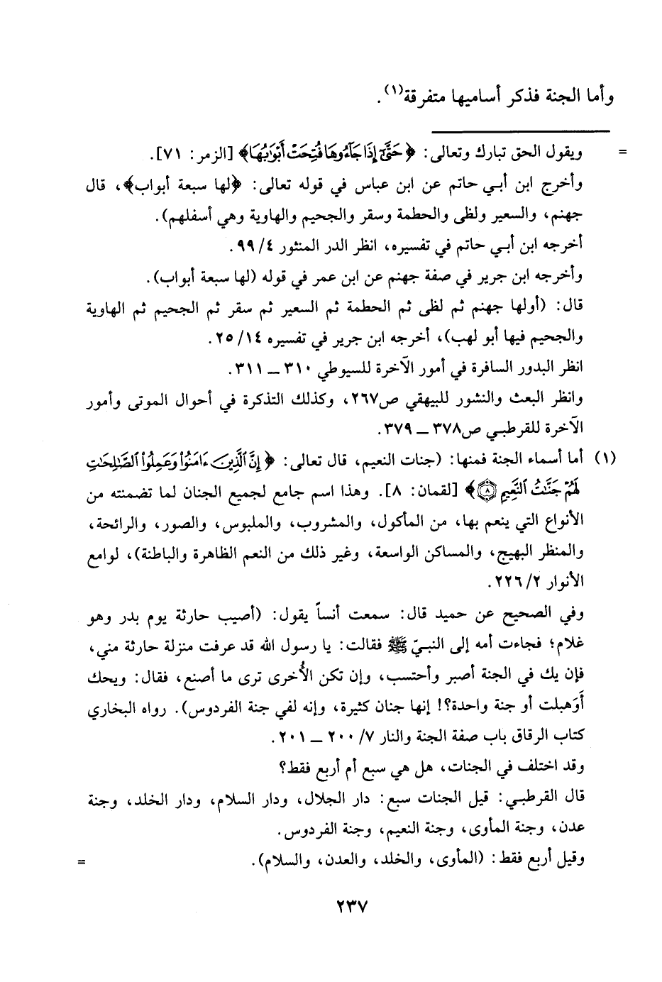 وَأما الْجنَّة فَذكر أساميها مُتَفَرِّقَة