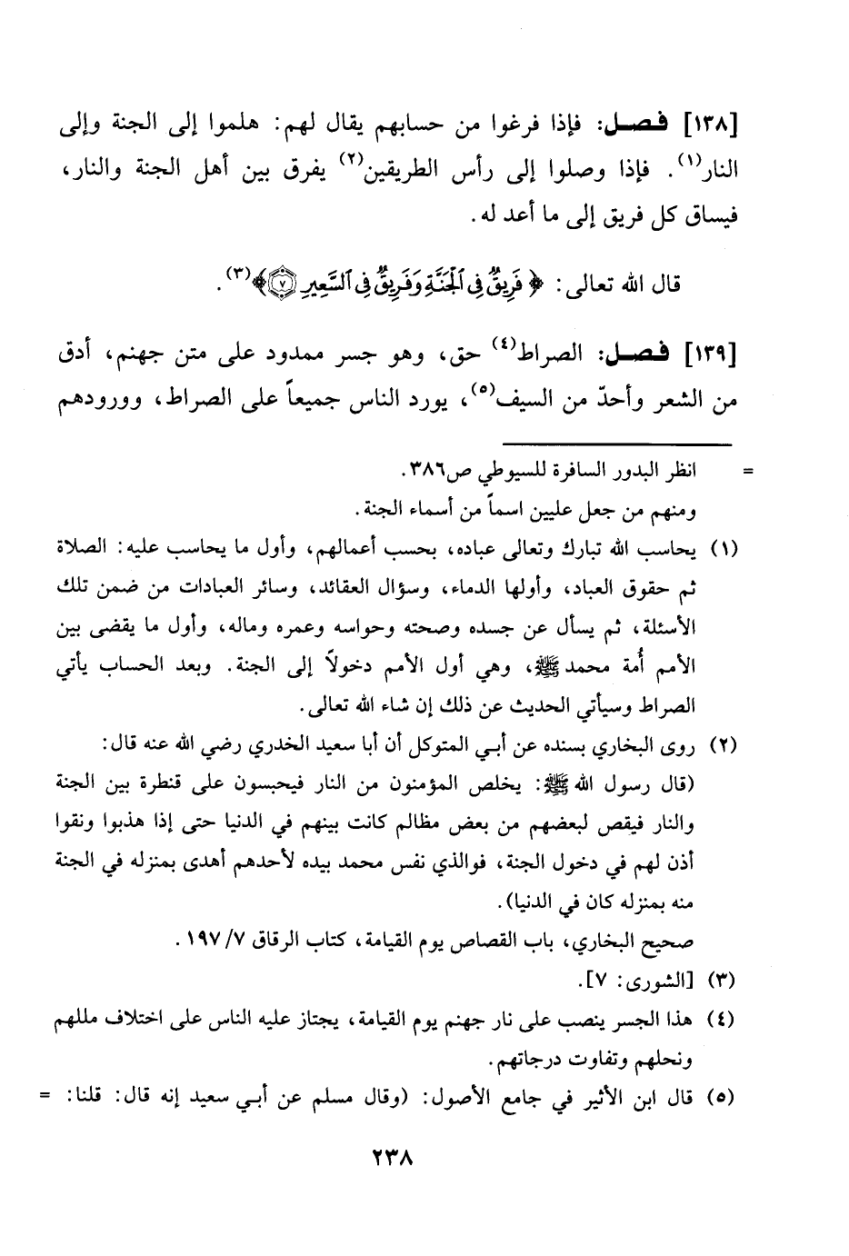 فَإِذا فرغوا من حسابهم يُقَال لَهُم هلموا إِلَى الْجنَّة والى النَّار فَإِذا وصلوا إِلَى رَأس الطَّرِيقَيْنِ يفرق بَين أهل الْجنَّة وَالنَّار فيساق كل فريق إِلَى مَا أعد لَهُ