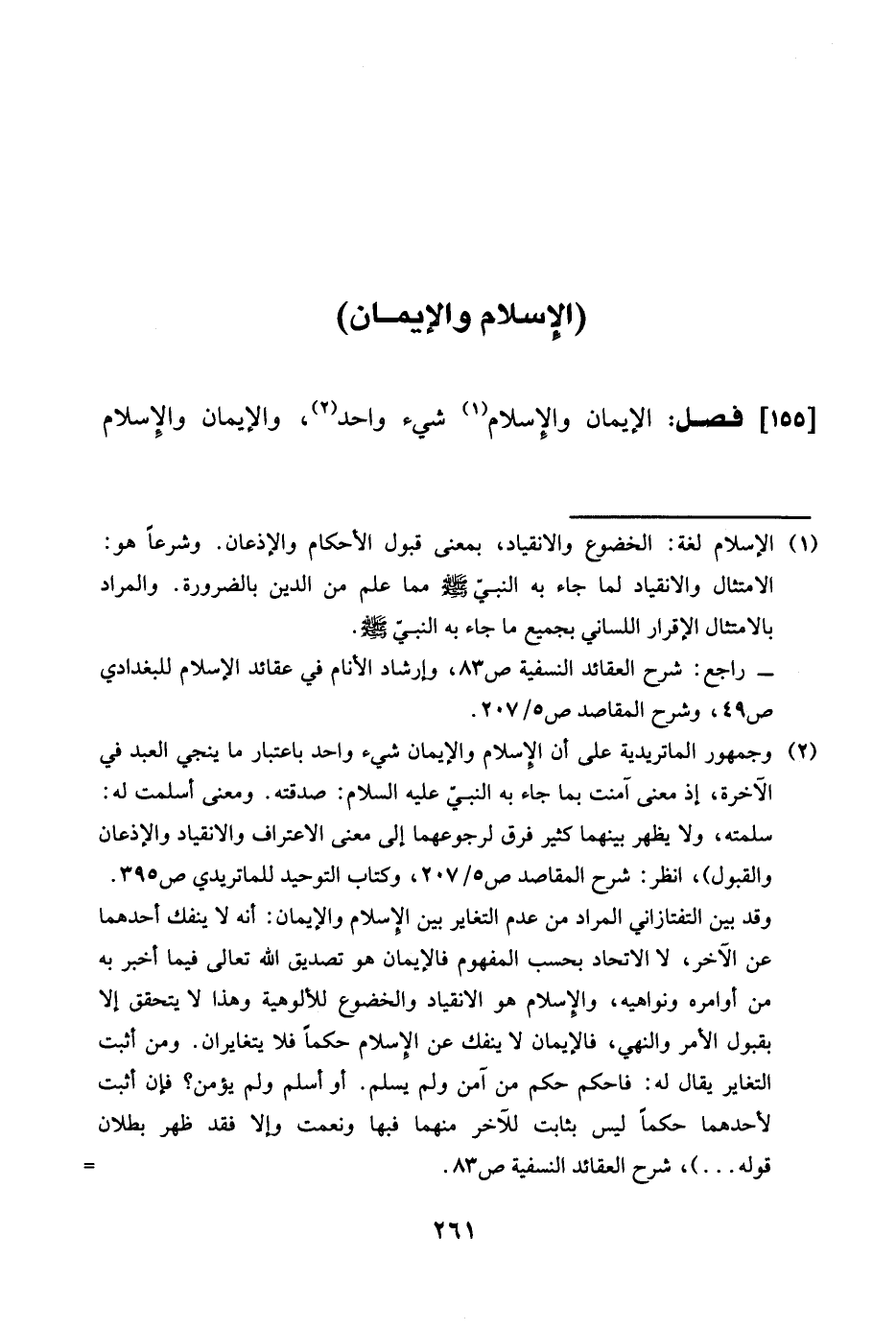الْإِيمَان وَالْإِسْلَام شَيْء وَاحِد وَالْإِيمَان وَالْإِسْلَام