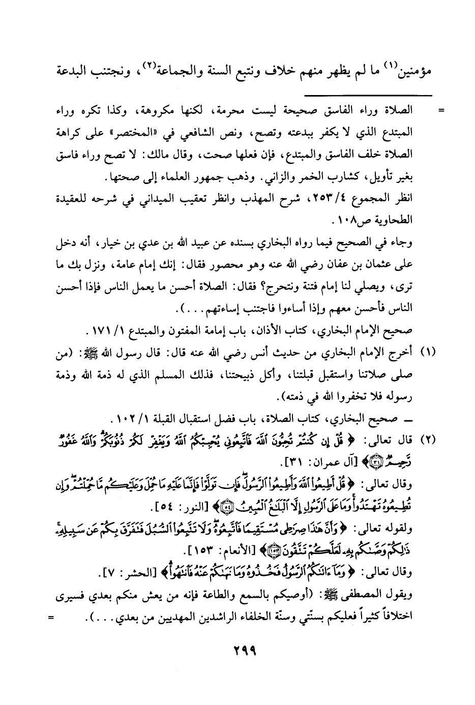 مُؤمنين مَا لم يظْهر مِنْهُم خلاف وَنَتبع السّنة وَالْجَمَاعَة ونجتنب الْبِدْعَة