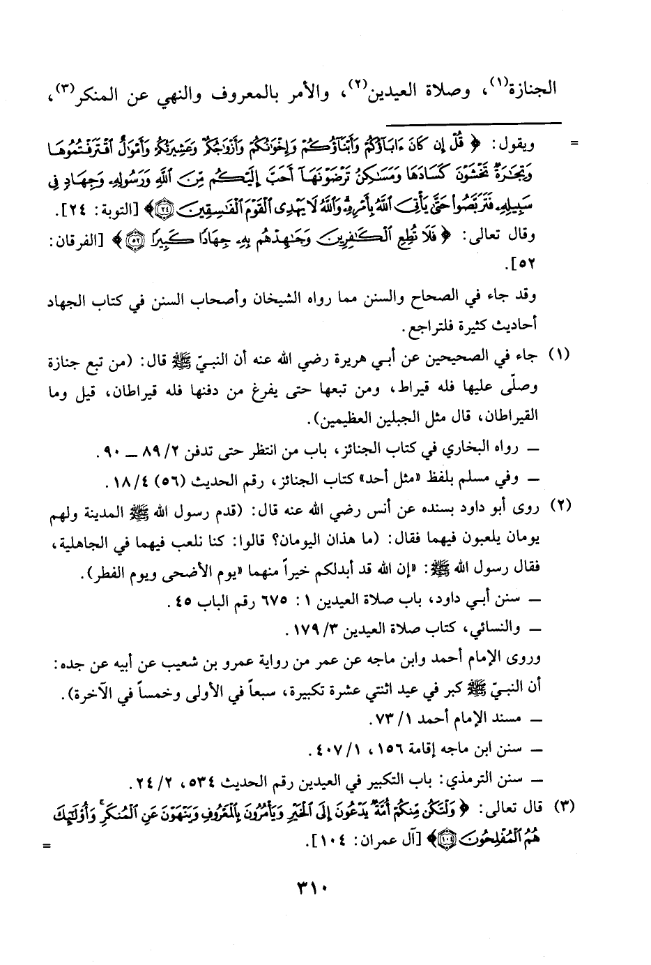 الْجِنَازَة وَصَلَاة الْعِيدَيْنِ وَالْأَمر بِالْمَعْرُوفِ وَالنَّهْي عَن الْمُنكر