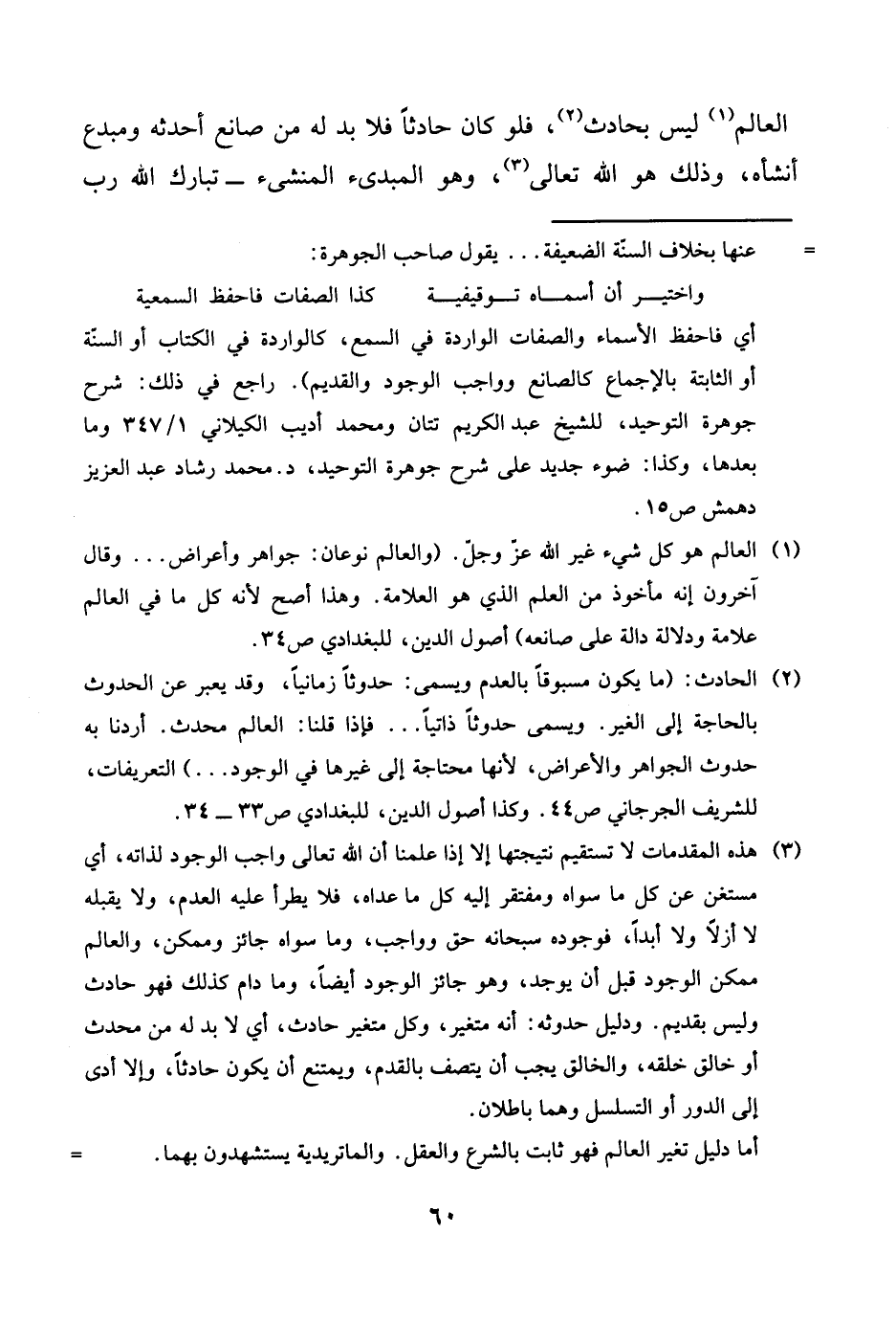 الْعَالم لَيْسَ بحادث فَلَو كَانَ حَادِثا فَلَا بُد لَهُ من صانع أحدثه ومبدع أنشأه وَذَلِكَ هُوَ الله تَعَالَى وَهُوَ المبدئ المنشئ تبَارك الله رب
