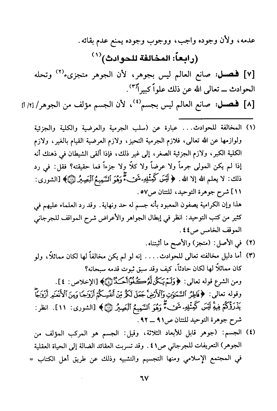 صانع الْعَالم لَيْسَ بجوهر لِأَن الْجَوْهَر متجزئ وتحله الْحَوَادِث تَعَالَى الله عَن ذَلِك علوا كَبِيرا