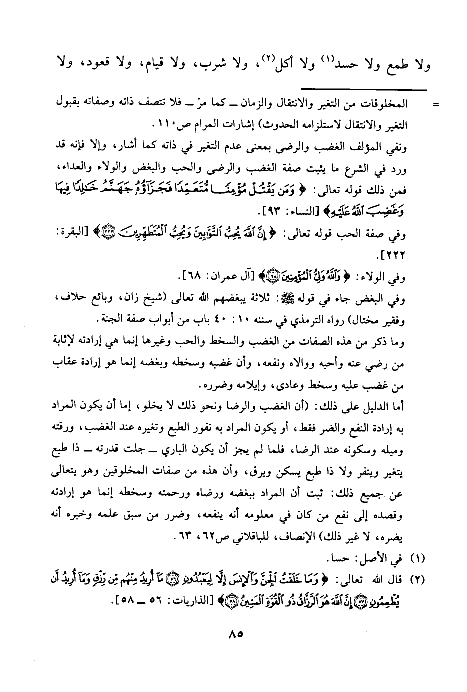وَلَا طمع وَلَا حسد وَلَا أكل وَلَا شرب وَلَا قيام وَلَا قعُود وَلَا