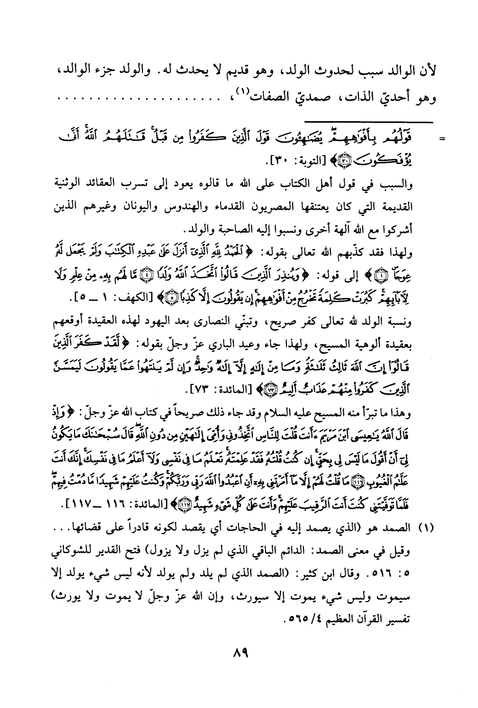 لِأَن الْوَالِد سَبَب لحدوث الْوَلَد وَهُوَ قديم لَا يحدث لَهُ وَالْولد جُزْء الْوَالِد وَهُوَ إحدي الذَّات صمدي الصِّفَات