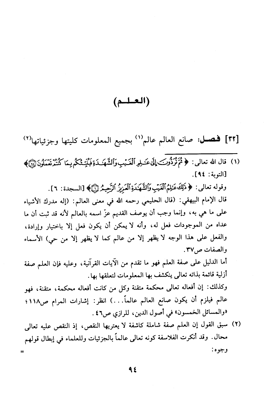 صانع الْعَالم عَالم بِجَمِيعِ المعلومات كليتها وجزئياتها