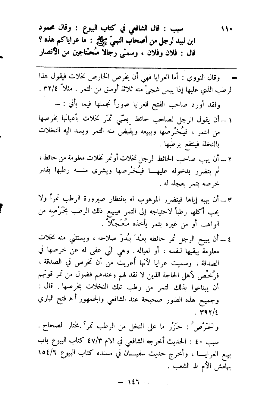 110 سبب قال الشافعي في كتاب البيوع وقال محمود ابن لبيد لرجل من أصحاب النبي صلى الله عليه وسلم ما عراياكم هذه قال فلان وفلان وسمى رجالا محتاجين من الأنصار