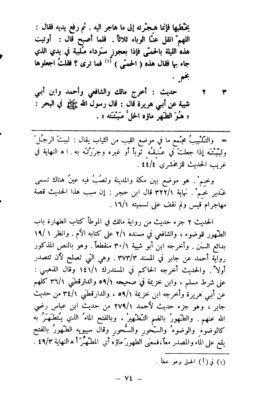 3 حديث أخرج مالك والشافعي وأحمد وابن أبي شيبة عن أبي هريرة قال قال رسول الله صلى الله عليه وسلم في البحر هو الطهر ماؤه الحل ميتته