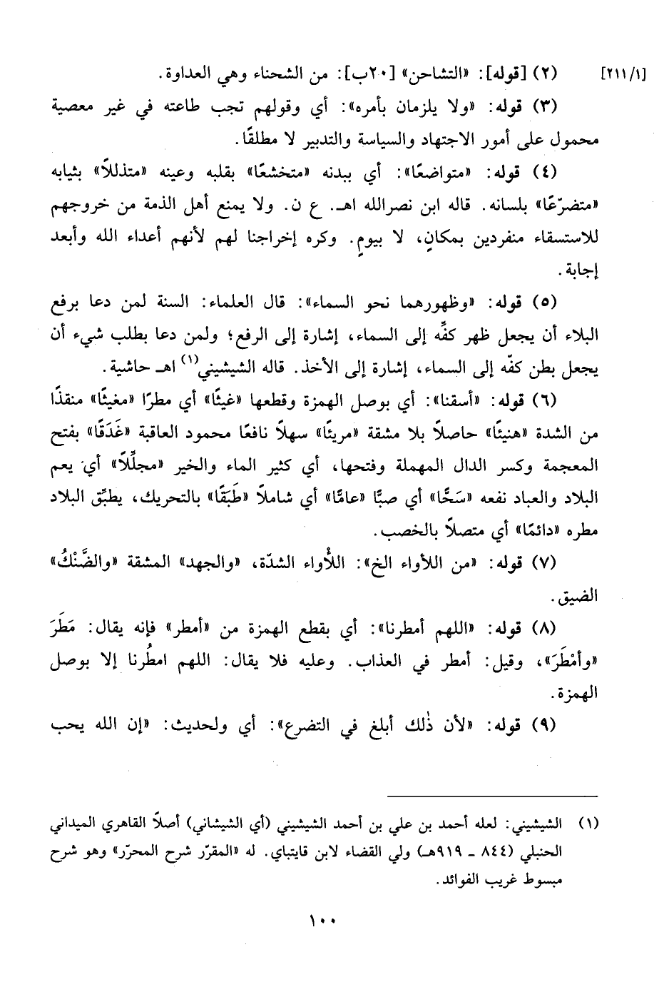 (¬1) الشيشيني: لعله أحمد بن علي بن أحمد الشيشيني (أي الشيشاني) أصلاً القاهري الميداني الحنبلي (844 - 919 هـ) ولي القضاء لابن قايتباي. له المقرّر شرح المحرّر" وهو شرح مبسوط غريب الفوائد.